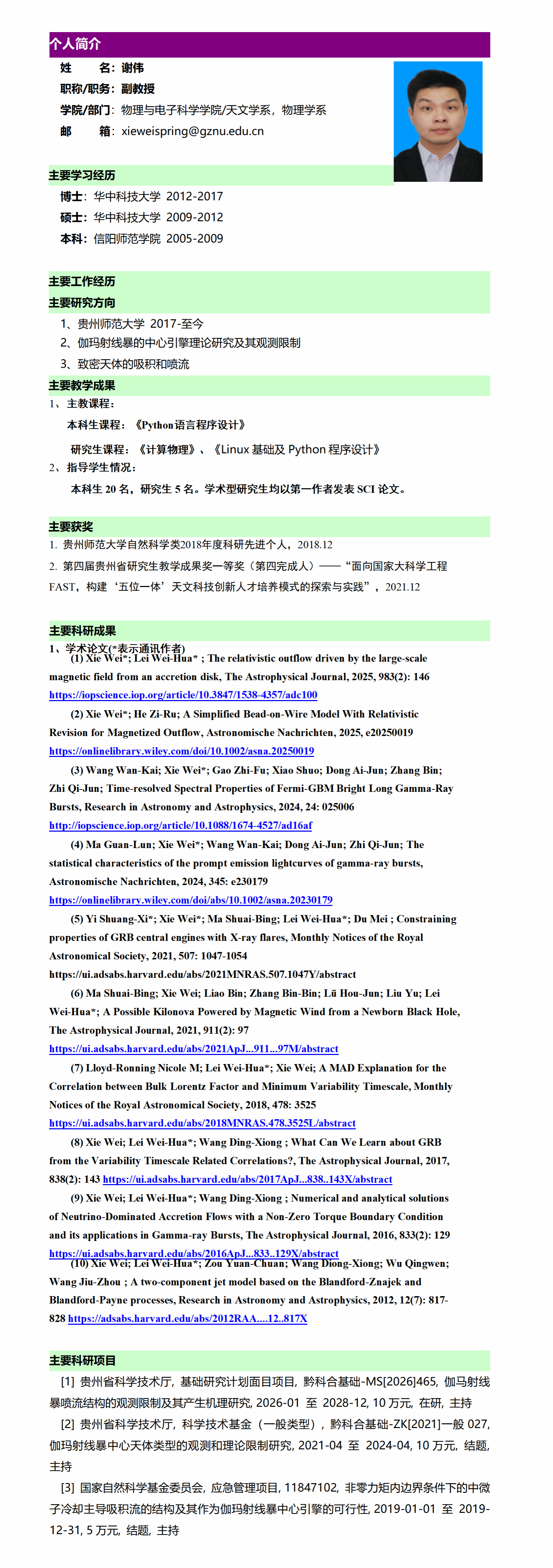 谢伟——研究生导师简介(2026)
