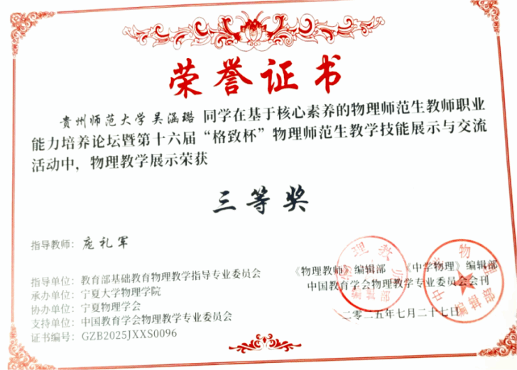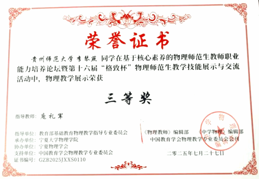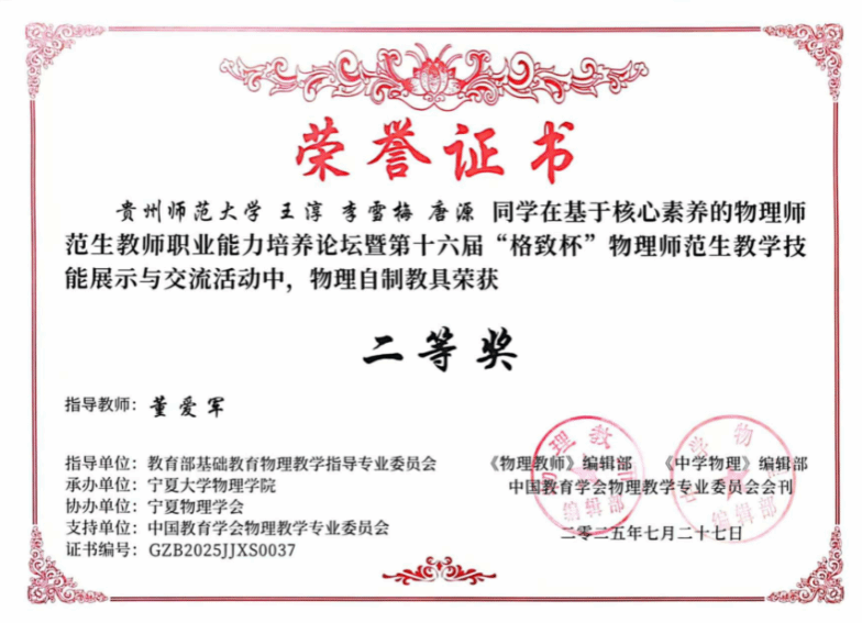这些成绩充分彰显了物理与电子科学学院在人才培养方面的卓越质量,学院始终坚持“以生为本、实践育人”的理念,通过优化课程体系、强化实训指导和鼓励创新实践,全面提升学生的专业素养和综合能力。衷心祝贺所有获奖师生,希望他们再接再厉,在今后的教学与科研中不断创造新的辉煌,学院将继续深化教育教学改革,为社会输送更多高素质的物理教育与科研人才。