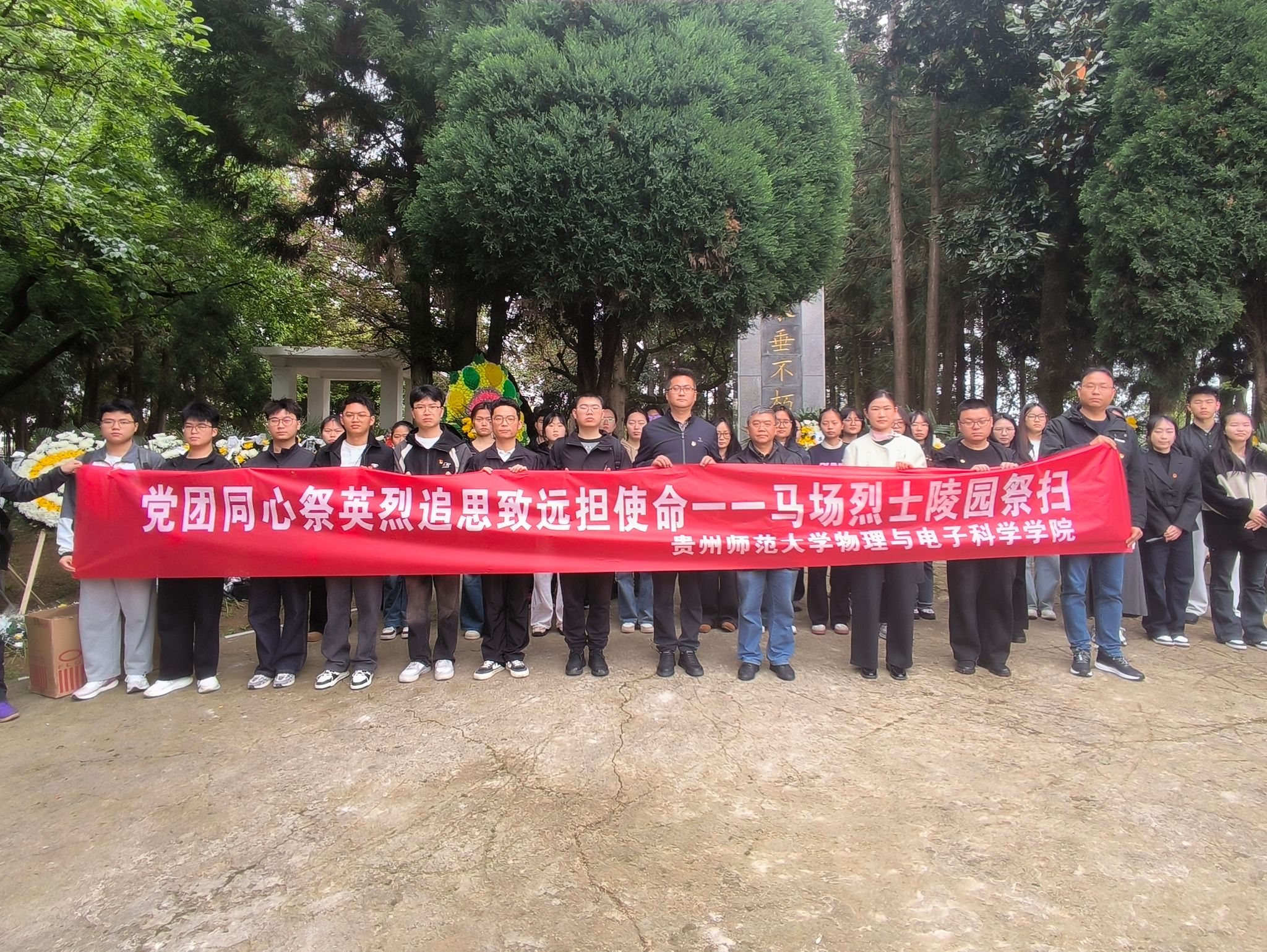 清明将至,春意寄思。为深切缅怀革命先烈,传承红色基因,4月3日上午,贵州师范大学物理与电子科学学院党委书记陈世国带队前往贵安新区马场镇烈士陵园,开展“党团同心祭英烈、追思致远担使命”清明祭扫活动。学院教师代表,学生党员代表、团员代表参加活动。