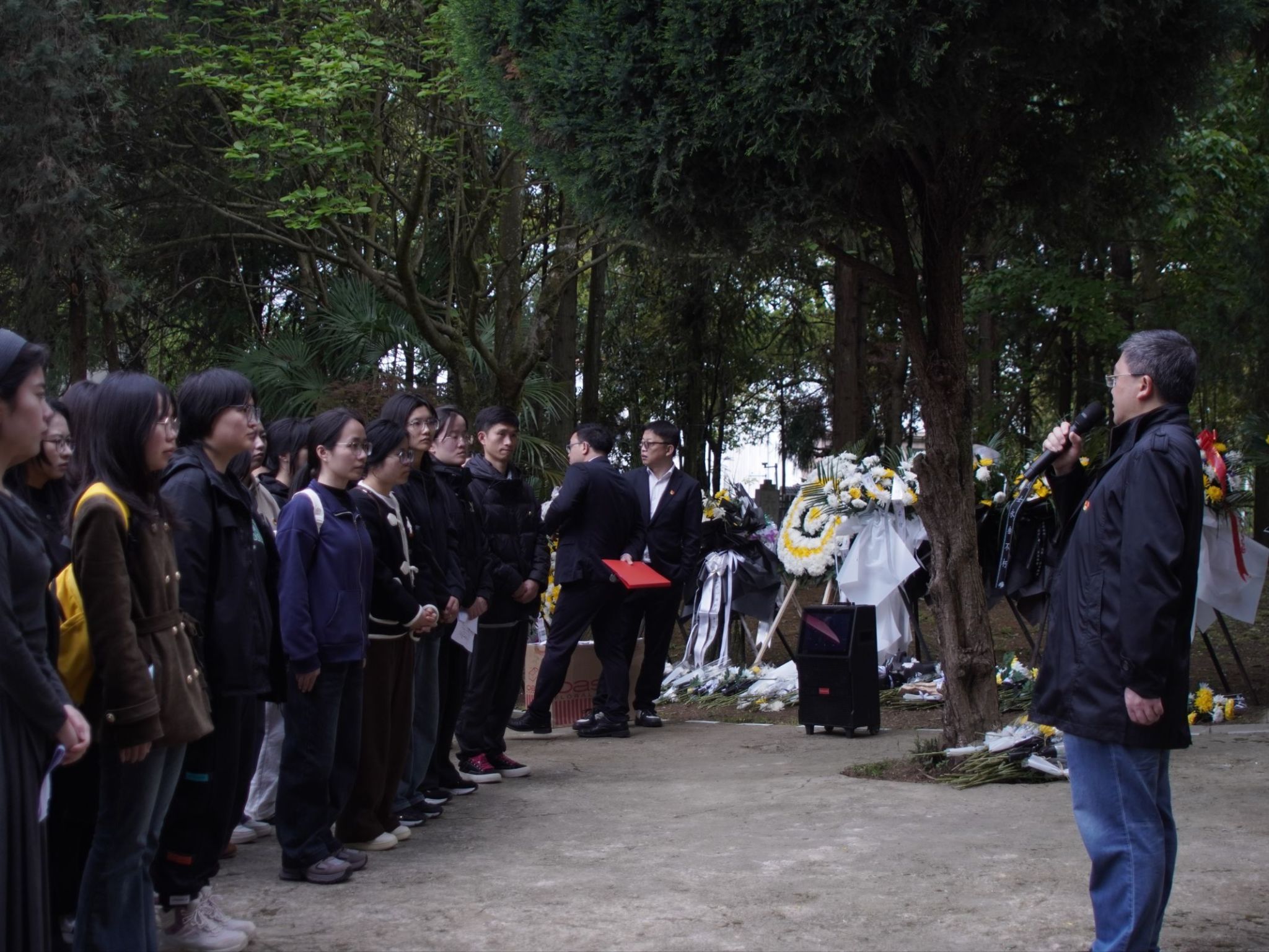 党员代表李金蓓讲述陵园背后的红色革命故事,带领师生重温峥嵘岁月,感悟先烈的家国情怀与使命担当。团员代表王艳婷分享感悟,表达新时代青年铭记先烈、勇担使命的坚定信念。
