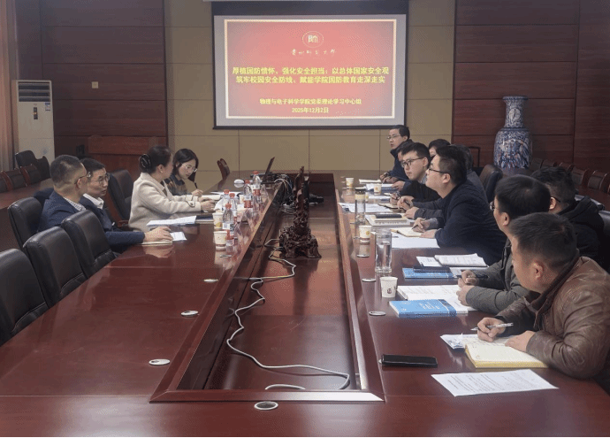 12月2日,校长张绍东列席指导物理与电子科学学院党委理论学习中心组(扩大)专题学习研讨会,地理与环境科学学院(喀斯特研究院)党委书记郭锐、党委副书记徐黎明、党委组织员(正科级)翁应芳列席旁听。会议由物理与电子科学学院党委书记陈世国主持,学院党委理论学习中心组成员参加,副院长董爱军(民主党派)、教工支部书记列席。
