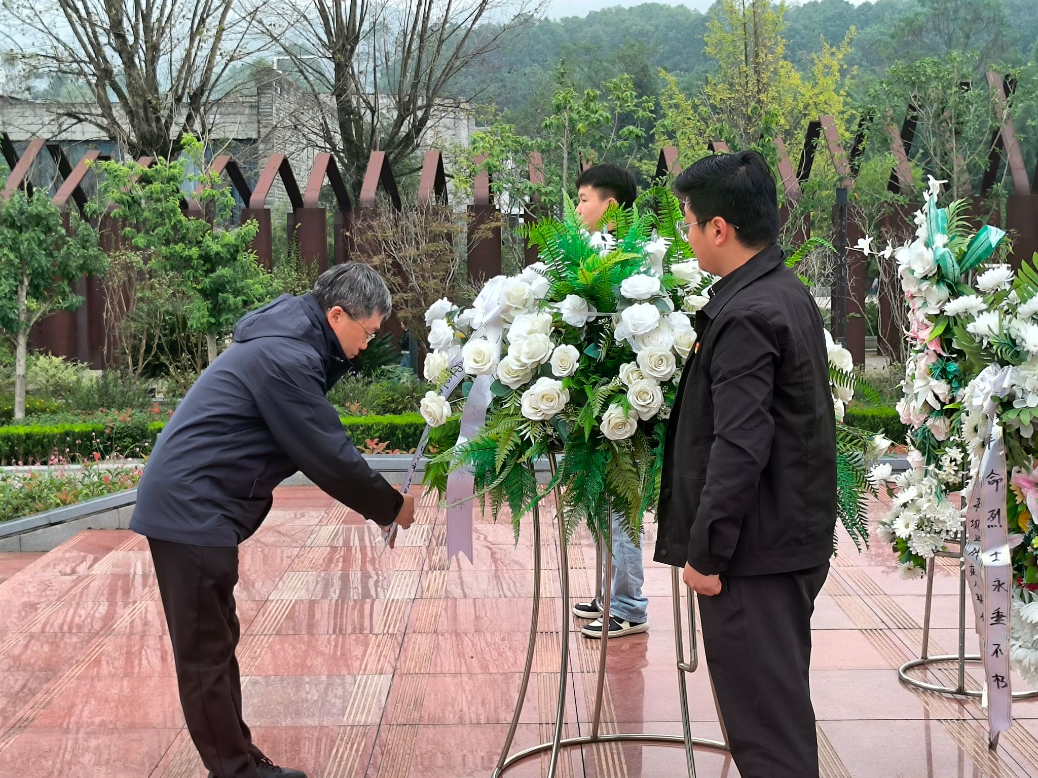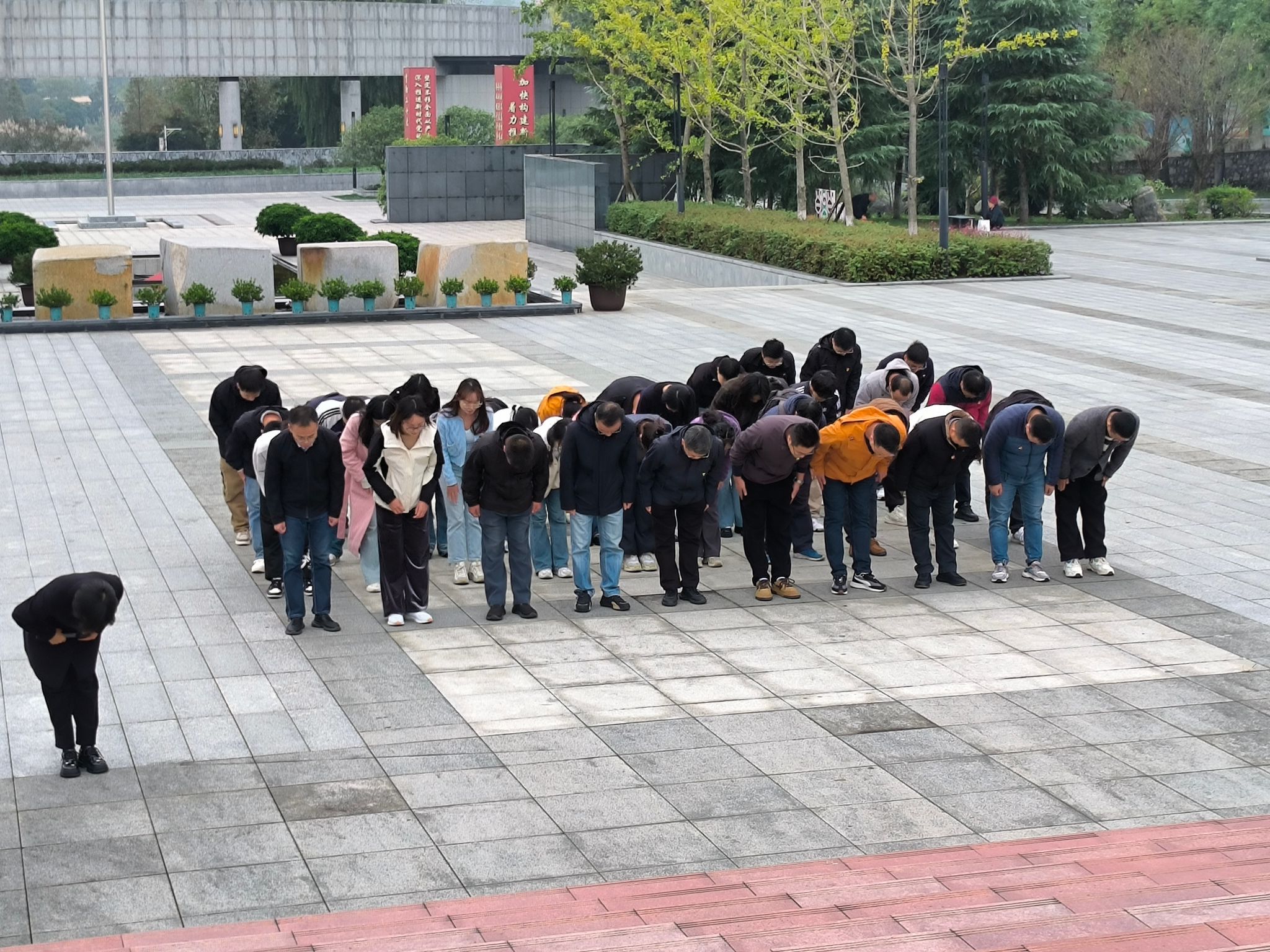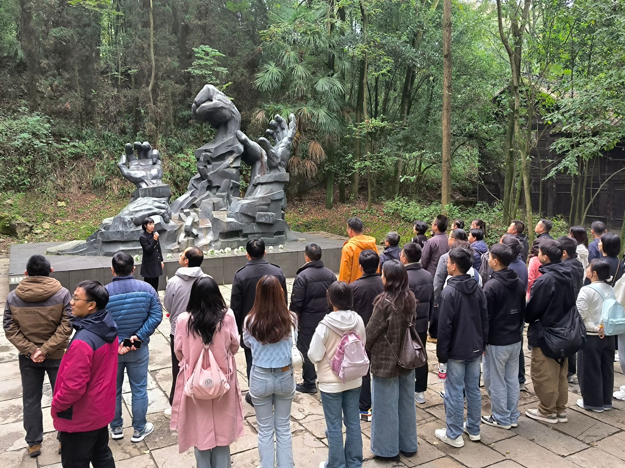 活动伊始,全体教师党员在息烽集中营革命历史纪念馆门前整齐列队、集中合影,以镜头定格对革命圣地的崇敬之情,拉开了此次红色学习的序幕。广场中央,缅怀先烈仪式庄重举行。学院党委书记陈世国缓步上前,仔细整理悼念缎带,神情肃穆。全体党员肃立默哀,随后向革命先烈深深三鞠躬,以最质朴的方式寄托对英烈的追思与敬意,感受先烈们在“人间魔窟”中坚守信仰的钢铁意志。